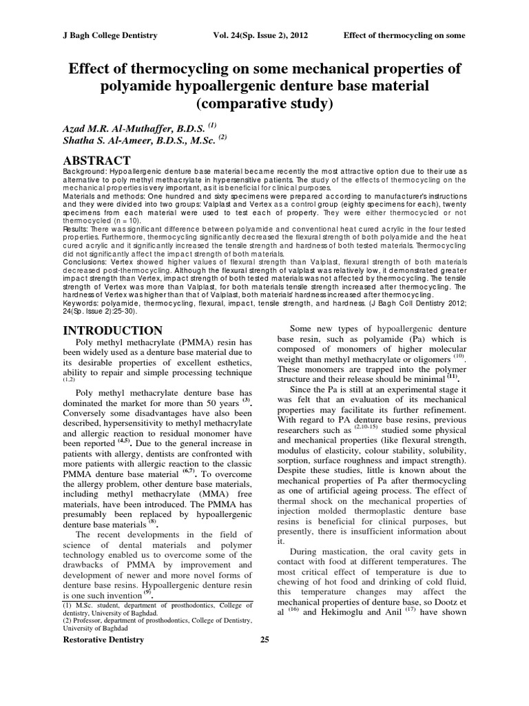 - Effect Of Thermocycling On Some Mechanical Properties Of Polyamide Hypoallergenic Denture Base Material Comparative Study Semantic Scholar : This Technique Eliminates Trial Packing And Excessive Pressures, Which Lead To Open Flasks And Altered Occlusal Vertical Dimension As Is Sometimes Experienced With Compression Molding Of.