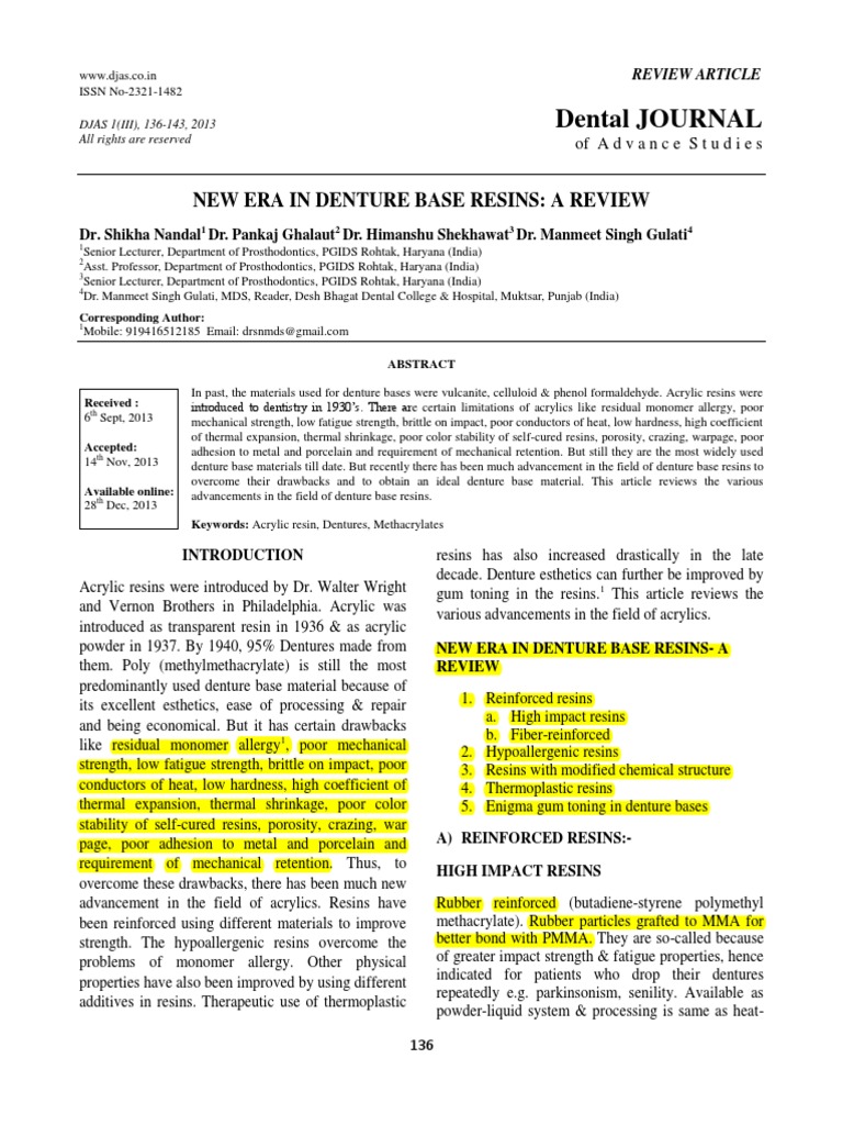 - Polyamide As A Denture Base Material A Literature Review Abstract Europe Pmc - The Aim Of This Addition Is To Achieve A Composite Resin Material With More Favorable Mechanical Properties 13.