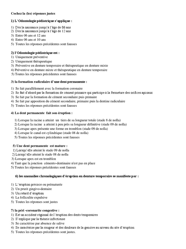 Qcm Prothese Dentaire Pdf . Qcm Pedo Dent Humaine Dent