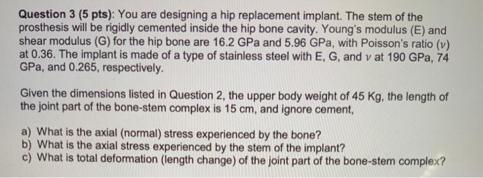 - Question 3 5 Pts You Are Designing A Hip Replac Chegg Com - How To Use Prosthesis In A Sentence.