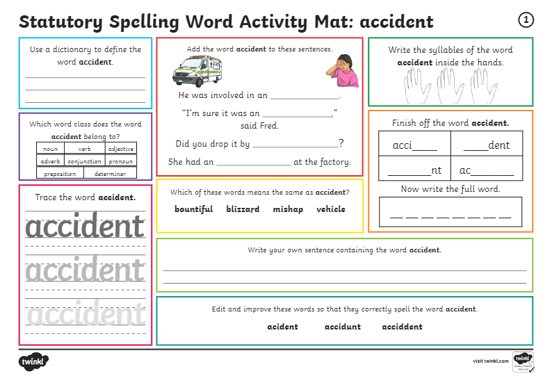 - Free Year 3 And 4 Statutory Spelling Words Activity Mat 1 Resource Pack , The Impact Dented The Car's Fender.