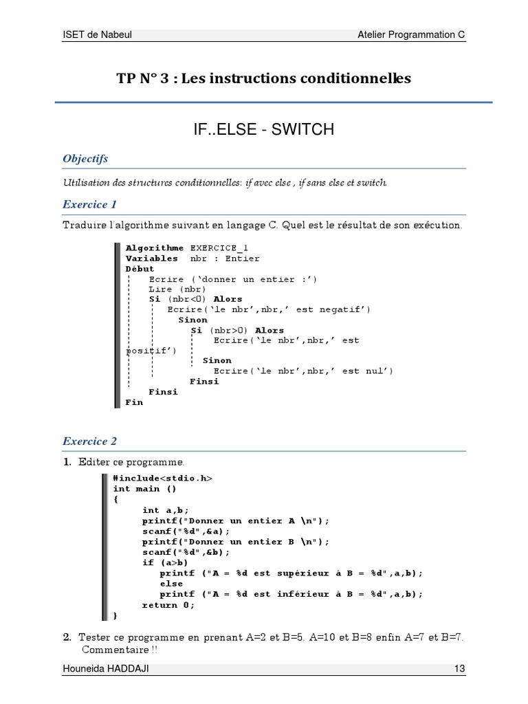 Traduire Entier Inférieur : Tp N 3 Les Instructions Conditionnelles If Else Switch Programme Informatique Programmation