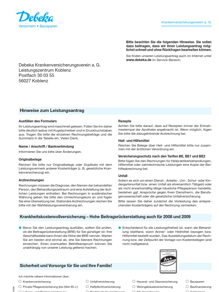 - Debeka Versichern Und Bausparen . Debeka Leistungsantrag Vordruck Variante 1 Anzeigen Im Zusammenhang Mit: