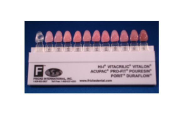Shade guide for nobiltone denture base materials.