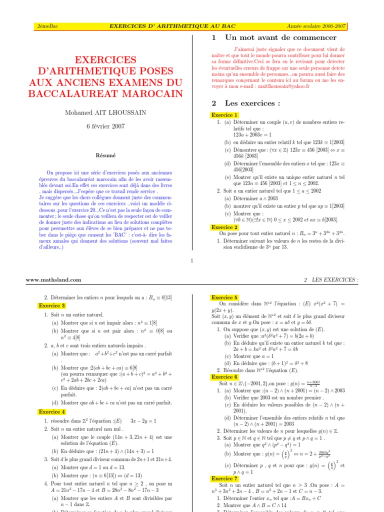- Chapitre1 Notions D Arithmetique Par Mohamed Fichier Pdf . Début De La Boite De Navigation Du Chapitre.