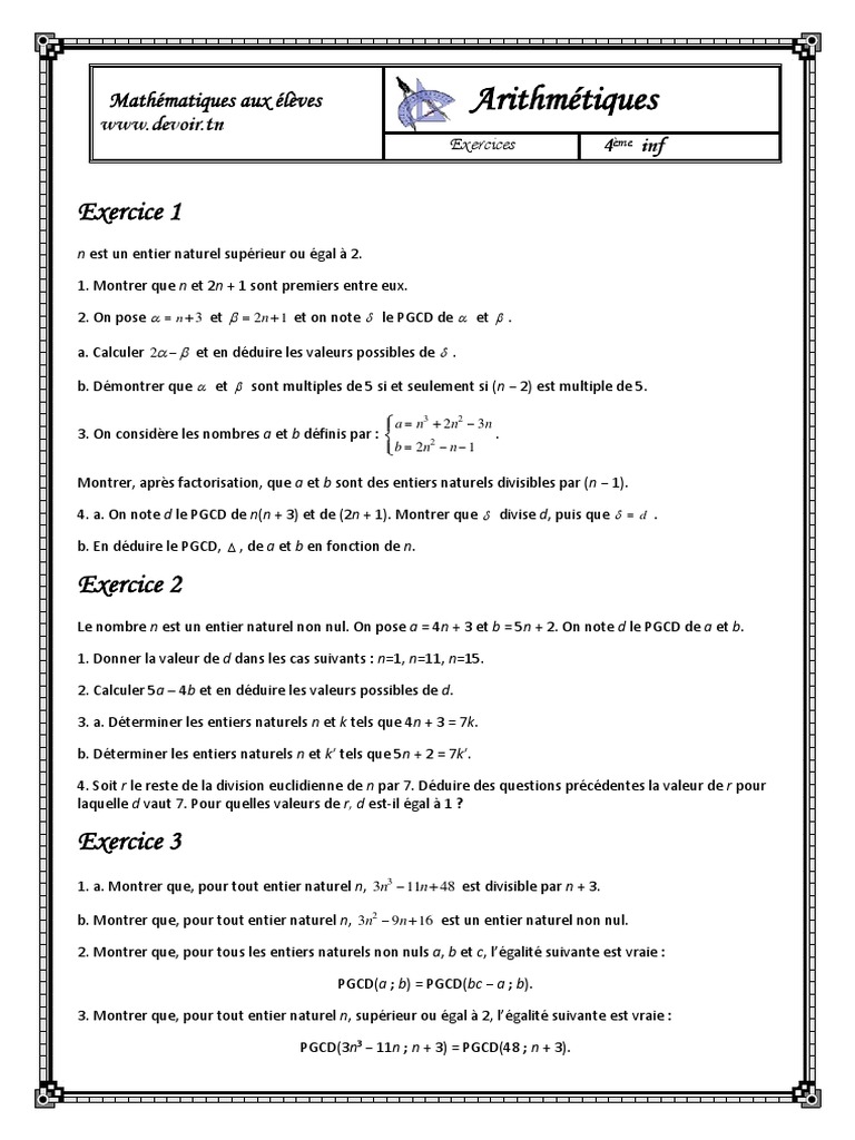 - Arithmetique 3Eme 1 Par Fayrouz Fichier Pdf . Où Et Sont Deux Entiers Naturels Strictement Positifs.